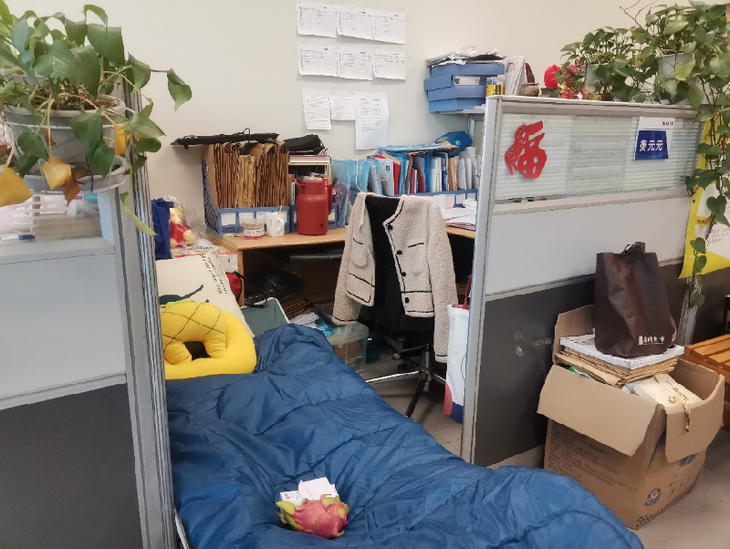 3月11日中午,上海第二工业大学进入闭环管理状态,一大批党员干部和教师毅然选择留校坚守,陪伴学生。当天晚上,学校办公区域的角角落落里支起了一张张值守岗位的行军床。